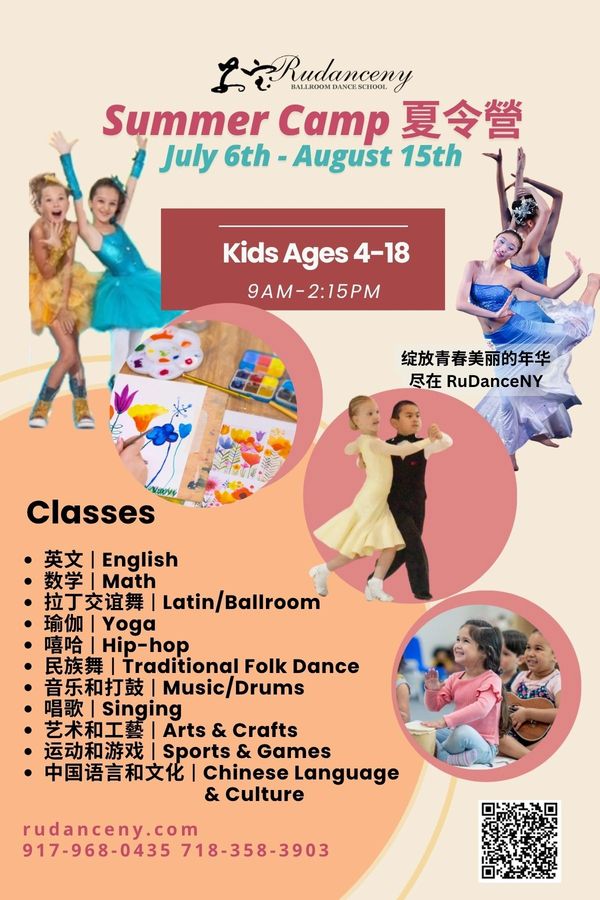 Activities: Multiple dance style, fun activities, and more! Curriculum includes multiple genre including english, math, Latin/ballroom, hip-hop, singing, and music are all included during the summer sessions. No experience required!